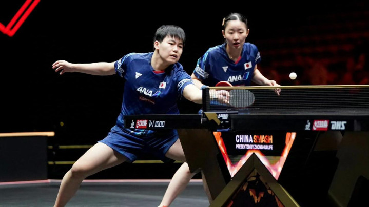 混双方面,在小组赛中,王楚钦/孙颖莎保持3连胜晋级半决赛,林诗栋/蒯曼取得2胜1负晋级。本比赛日率先进行的是混双半决赛比拼,其中巴黎奥运会混双冠军王楚钦/孙颖莎对阵日本组合松岛辉空/张本美和,林诗栋/蒯曼与韩国组合林钟勋/申裕斌,以下是两场混双半决赛具体战况。